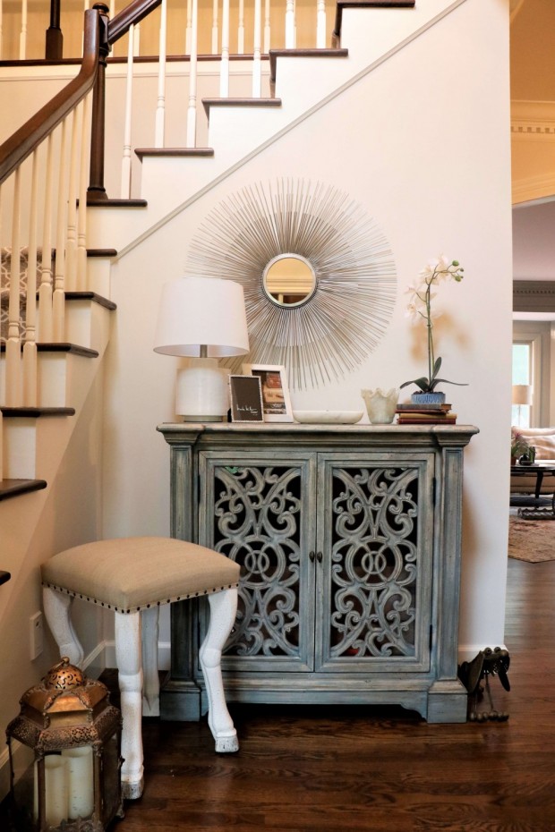 Our clients, from Chicago, working for a large local corporation have been transplanted here in STL. They quickly purchased a house and charged us with the task of making it their home. We called in our building partners from LU Design Build to work with us on recreating this dated two story. We knew we could do it, and we had big plans…New color palette, new furniture and styling, kitchen, laundry and Master bathroom + closet renovation and full service interior design.
