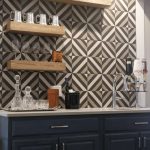 - Installed graphic tile back splash and floating wood shelving in wet bar