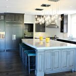 A bar which was never utilized became the back staircase, and the old staircase in the kitchen, became a much needed beverage station for her busy family and for all the entertaining. We then closed off the doorway into the kitchen from the garage, which was dumping kids and friends right into her sink area and cooking space, widened that hallway, removed a tiny powder room and brought that doorway down a bit. Also we flipped the layout of the existing laundry room and gave her the much needed cabinetry and space to keep up with her busy family. Incorporating a fresh, clean color palette, stunning lighting and elements to the new space. Adding in new stainless appliances, custom furniture, custom cabinets, and a fresh look, we were able to give the vision some life and we made her dream from many years ago a reality.