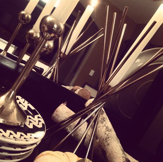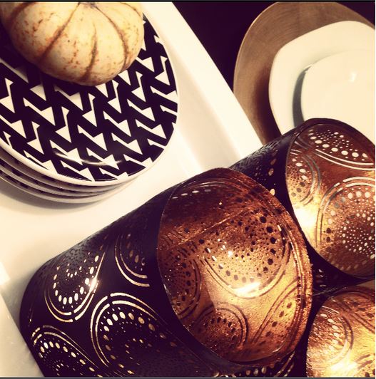 As I sit here inspired by fellow CURE Associate Designer blog post about her Rustic Glam Harvest action in her own space, a cup a joe and a recent holiday haul, I felt compelled to “Fall into Fabulous” myself, so I created a tablescape using some old favorites and new finds to heighten the glam in our dining room for the holidays! Now, nothing is complete without stunning flatware and a few long stemmed wine glasses, but Ill keep those tucked away until our guests arrive. For now, I just wanted to showcase our color palette and a few well placed metallic’s and flames. What do you have going on for the holidays?
