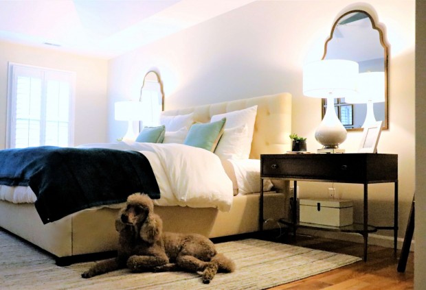 I didn’t have much style direction from the homeowner, other than the rest of the rooms in her house designed by another designer. Because she was satisfied with the look of those rooms, that’s where I started. I also didn’t have to worry about reusing any furniture, because the only thing they had in the room was their bed. Which fortunately was a good neutral, so the sky was the limit! As the project progressed, she did share some stricter criteria for sourcing their new furniture and material selections: these items should be [mostly] made in the USA with minimal-to-no particle board and be made from organic cotton and/or natural materials, nothing synthetic. Her husband has severe allergies, so being hypoallergenic was also a must, even with the air purifier.