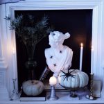 So, I present to you, my first holiday decor in the new apartment….starting with my spooky mantel. I wanted to incorporate the Pre-war moldings and mantel into the design and came up with some sort of a haunted mansion vibe??? I’m not exactly sure what it is, but I like it, and hope you do too….